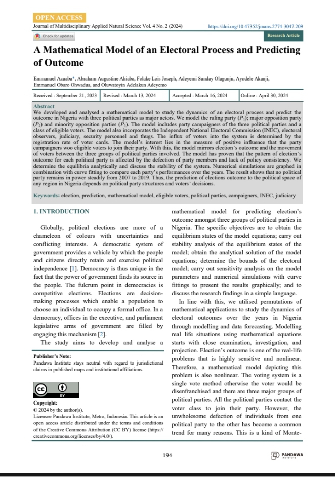 A Mathematical Model of an Electoral Process and Predicting of Outcome